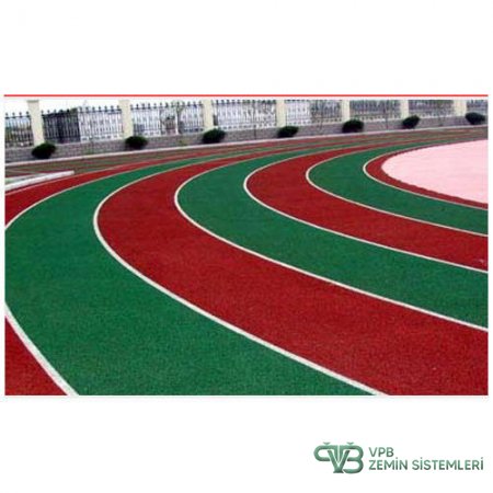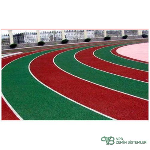 3) Sentetik kaplama, DIN normlarına uygunluğu belgelenmiş, 10 mm polimerik bağlı EPDM bazlı elastik katman üzerine, içerisine EPDM granül yataklandırılmış 3 mm poliüretan kaplama ile toplam 13 mm. Kalınlıkta Sandvich sistemle uygulaması yapılacaktır.